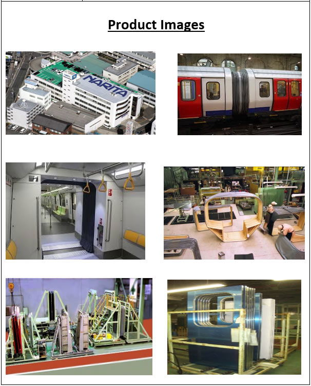Narita has supplied gangways to Singapore MRT, Melbourne Bayside, Guangzhou Metro, Taiwan Shinkansen, China Shinkansen and Taiwan Tilting projects.